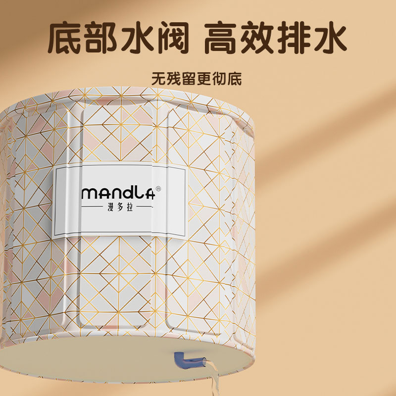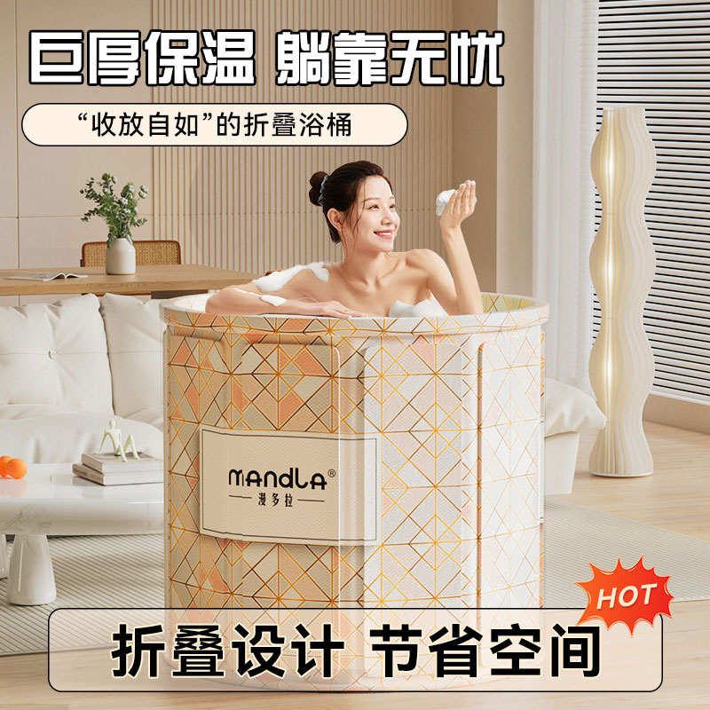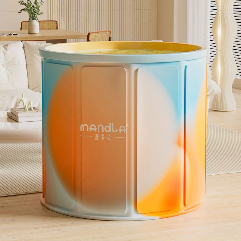 成人加厚保温可折叠浴桶 70-65cm 幻彩蓝橙色 北欧粉白 两色可选