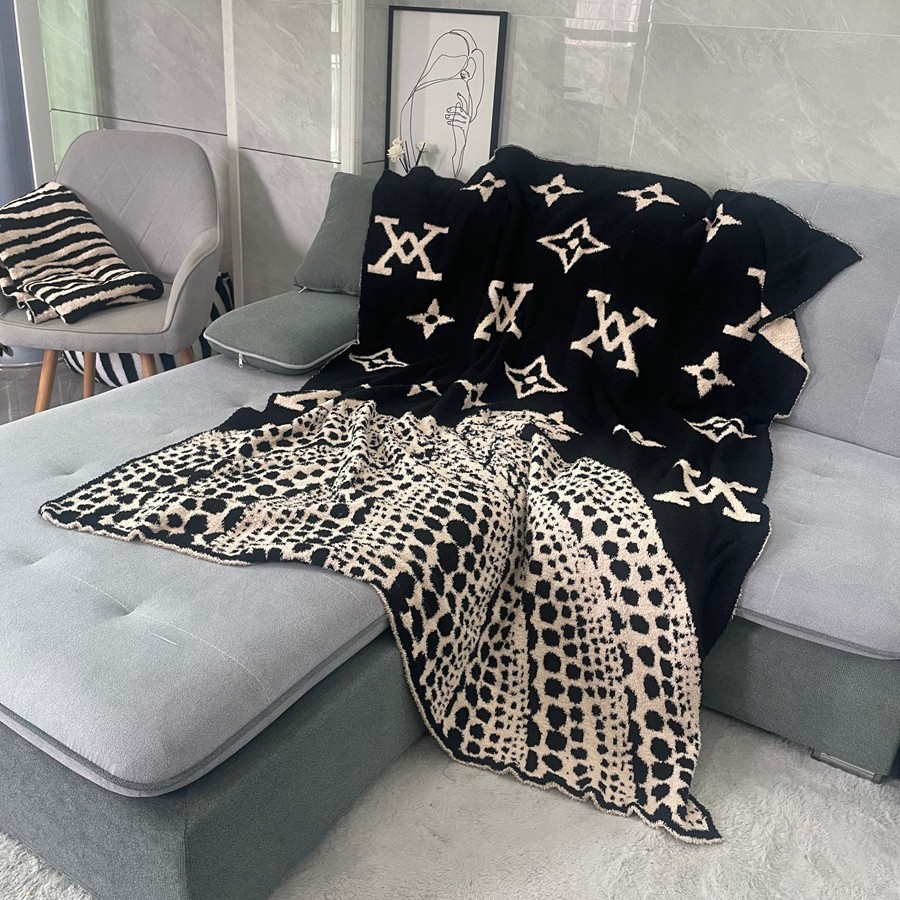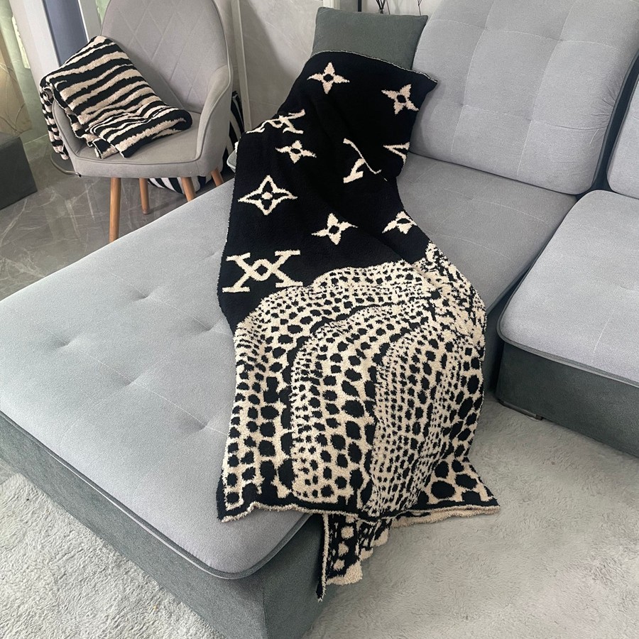 设计师款半边绒南瓜LV老花 休闲针织毯1.3米-1.7米