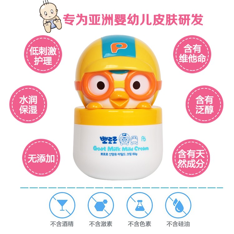 韩国正品Pororo波乐乐山羊奶儿童保湿面霜(60ml)