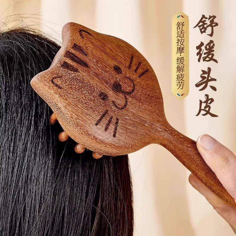 金丝檀木小猫钉钉按摩梳 精致礼盒装
