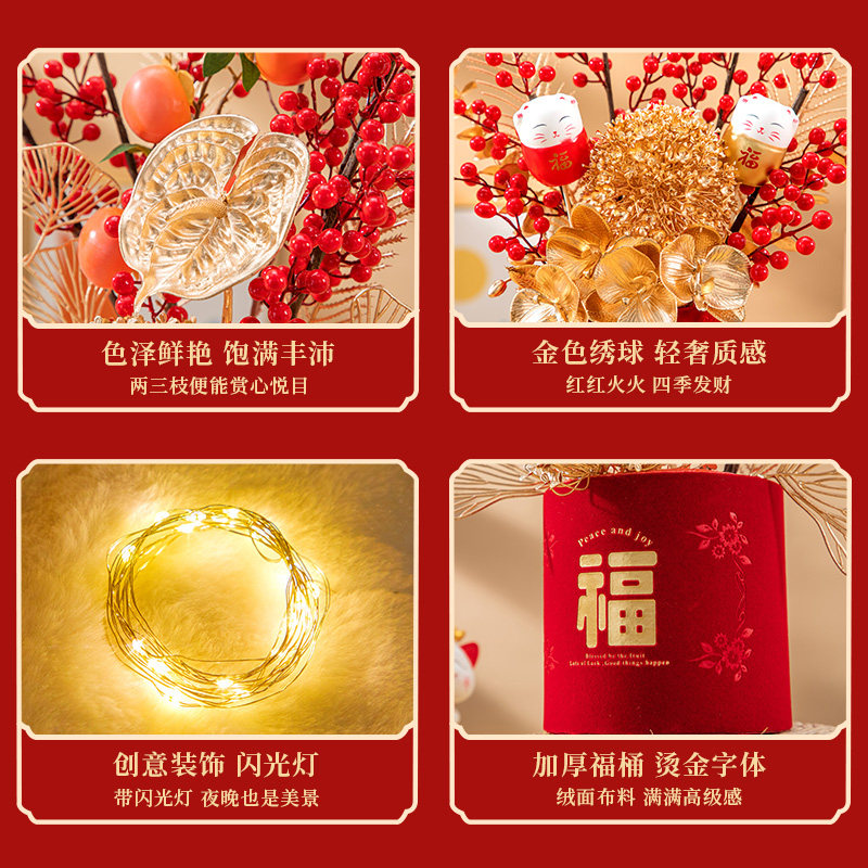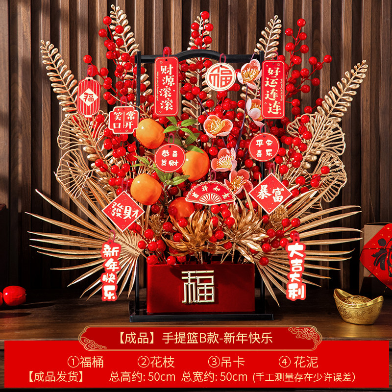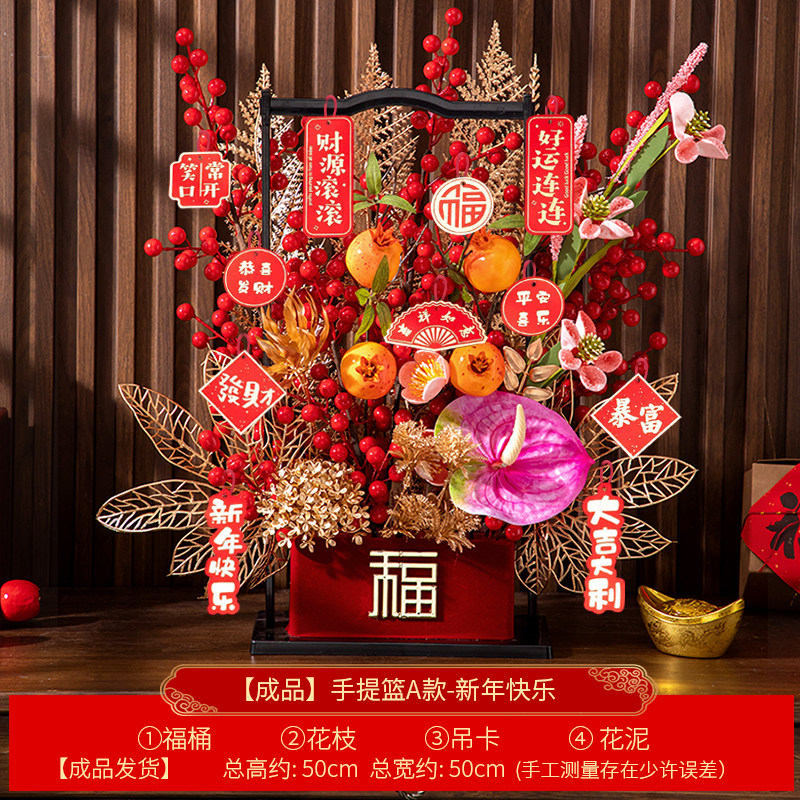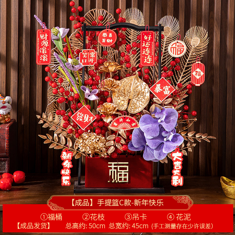 2026最新款 新中式春节福篮 财源滚滚 好运连连主题A款:福果盈枝(粉色红掌) B款:金玉满堂(鎏金花枝) C款:紫气东来(紫兰)