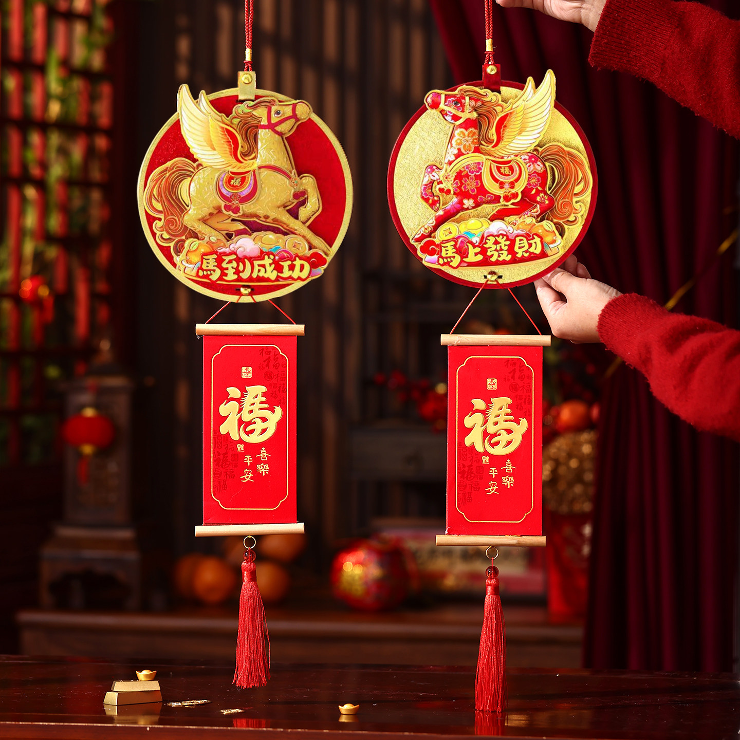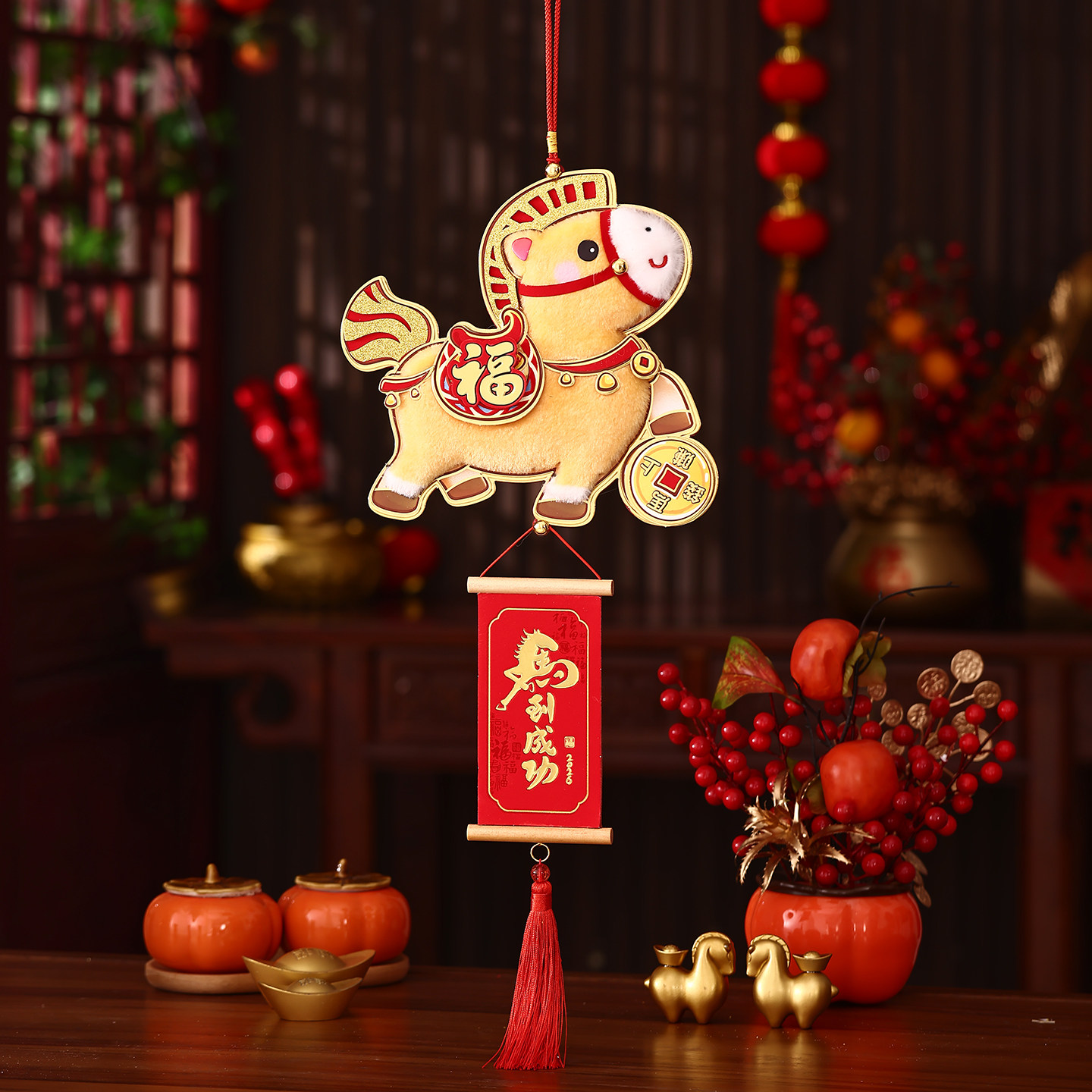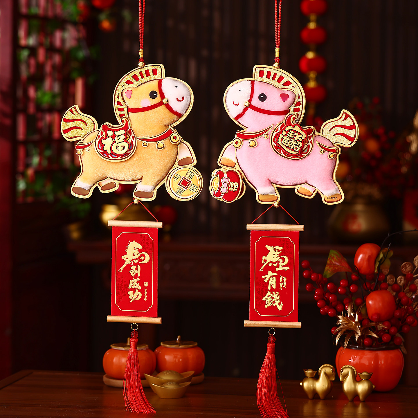 2026全新创意卡通春节装饰立体挂件 A:白金福马 B: 粉红福吗 C:金提飞马