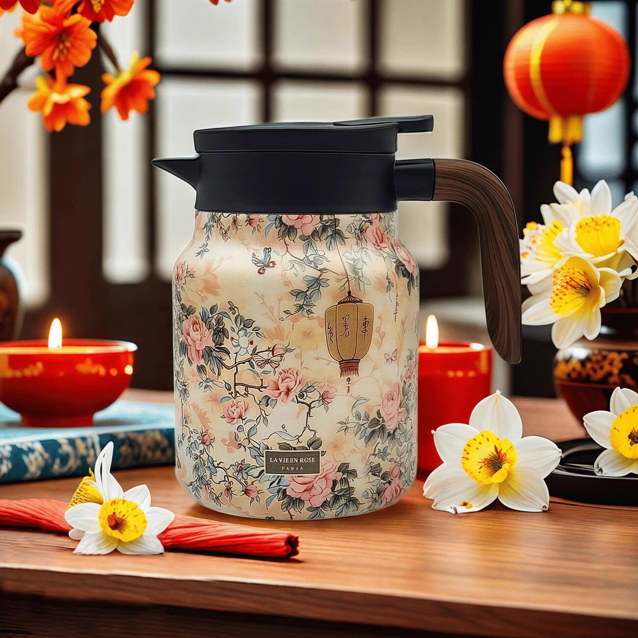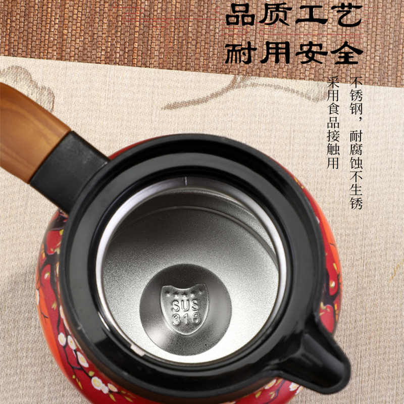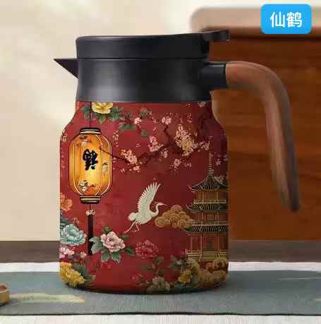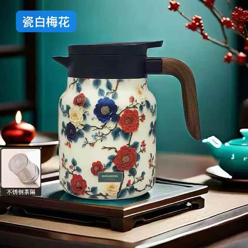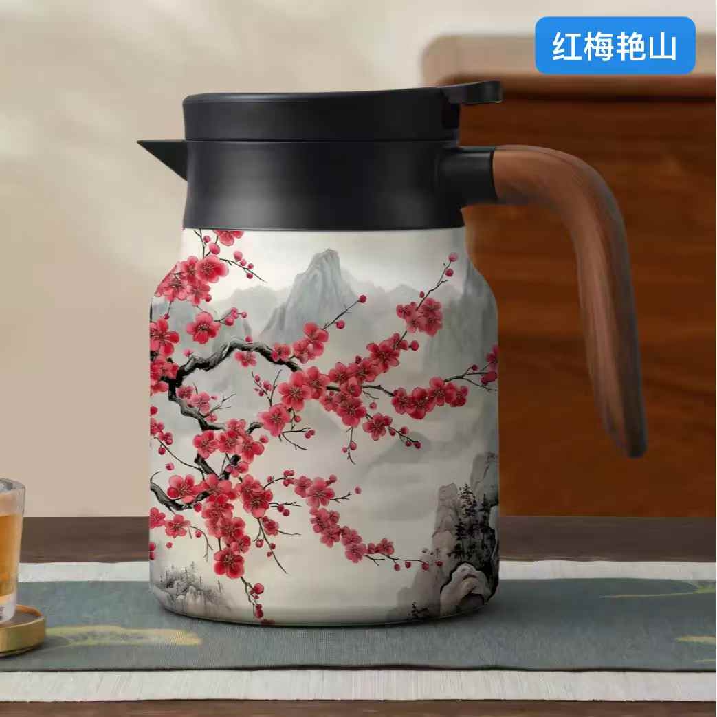 国风316不锈钢保温焖茶壶 (1000ml) 五个花色可选:瓷白梅花,清新花草,海棠初夜,红梅艳山,仙鹤