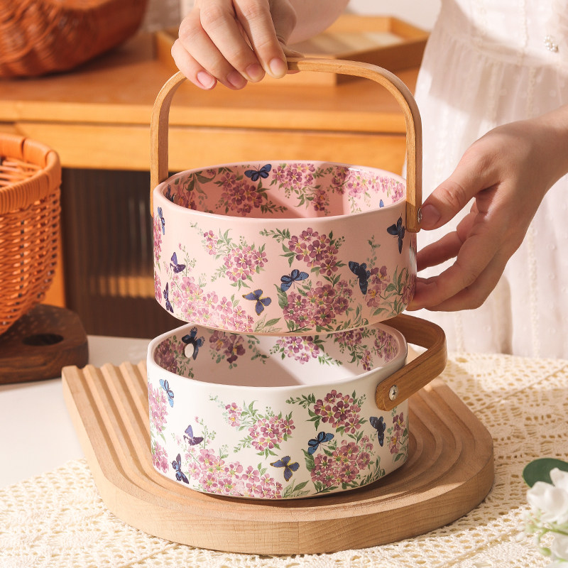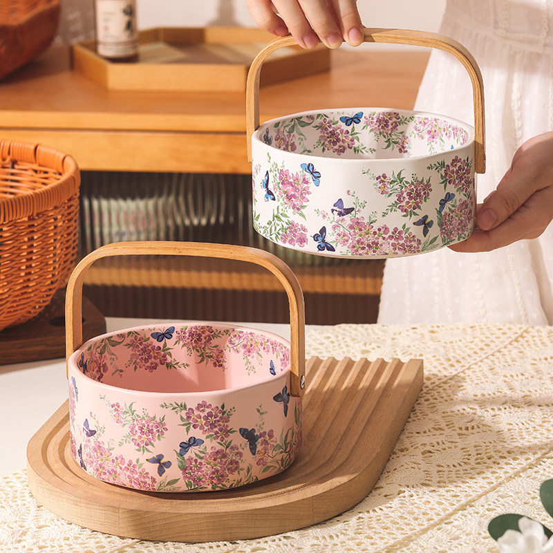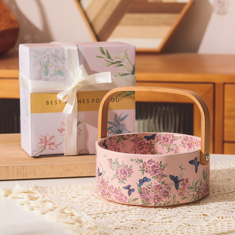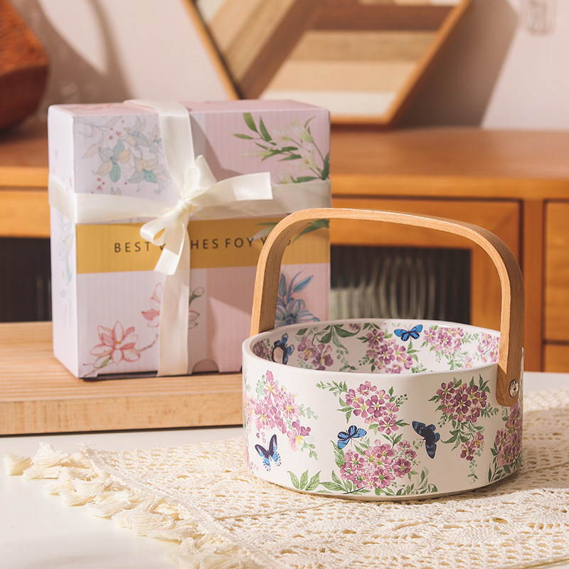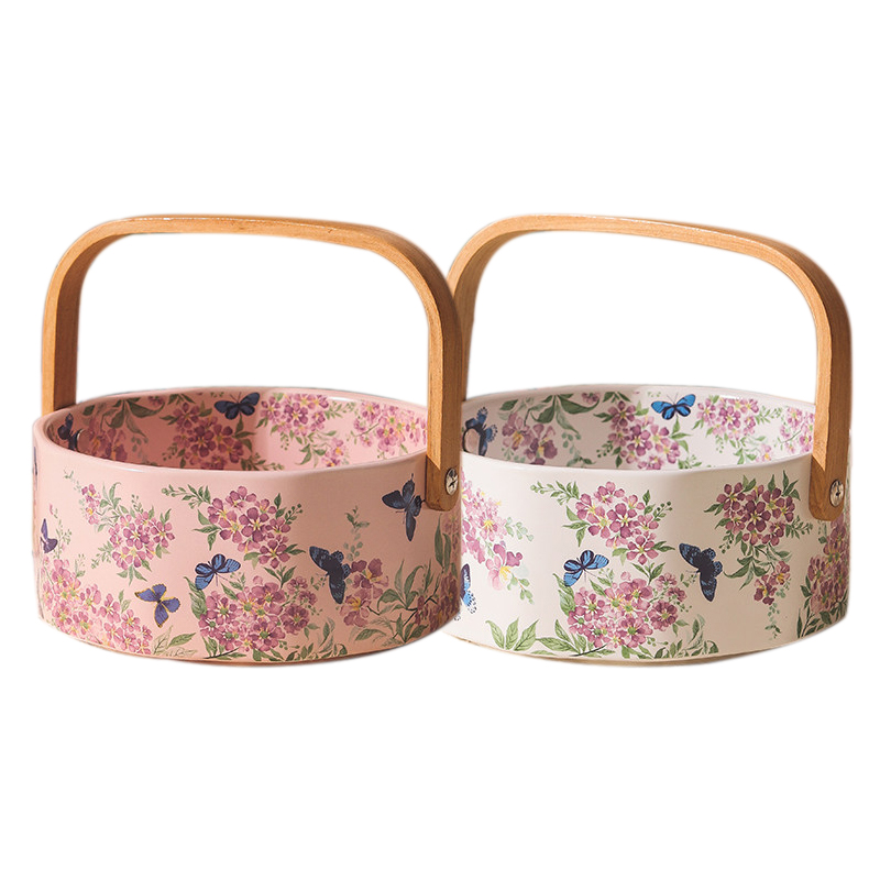 繁花似锦陶瓷手提水果篮 白色紫薇花,粉色紫薇花可选