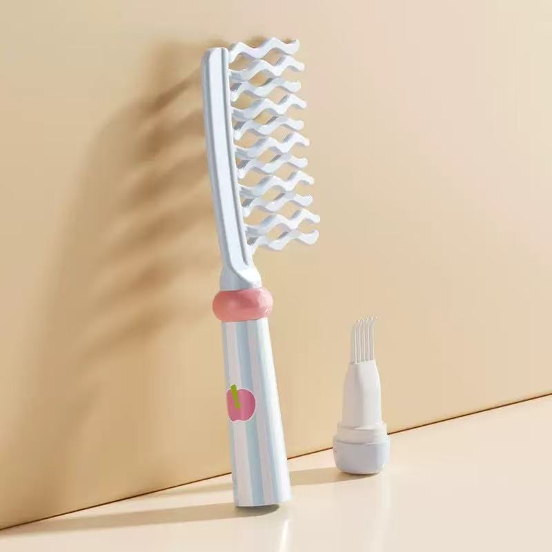 双排波浪齿卷发头皮按摩梳 蓝色现货
