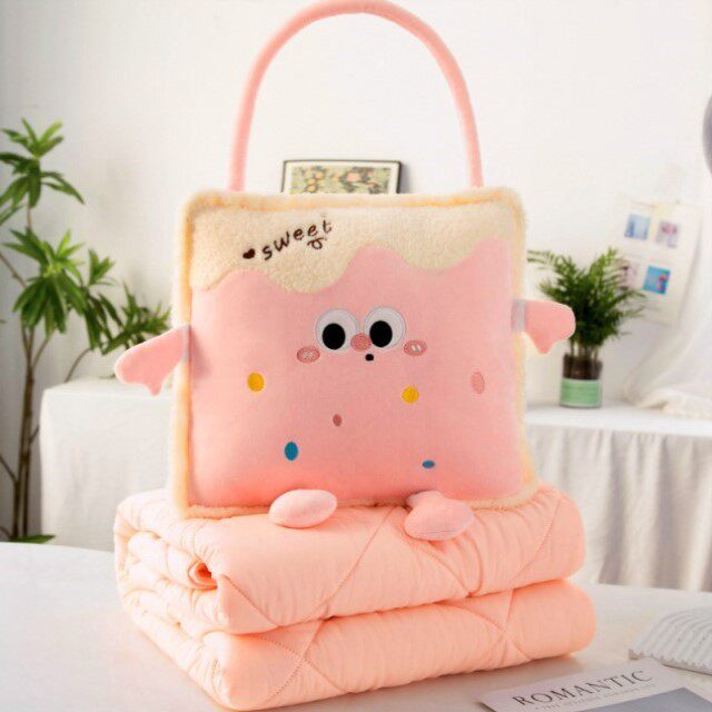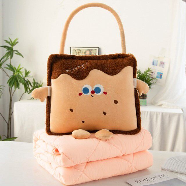 多巴胺二合一手拎抱枕空调被,草莓饼干 巧克力饼干 芝士奶酪 三个款式可选 抱枕:40-40cm, 被子:100-150cm
