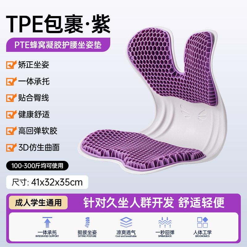 第三代升级蜂窝凝胶护腰坐垫,紫色、灰色两色可选