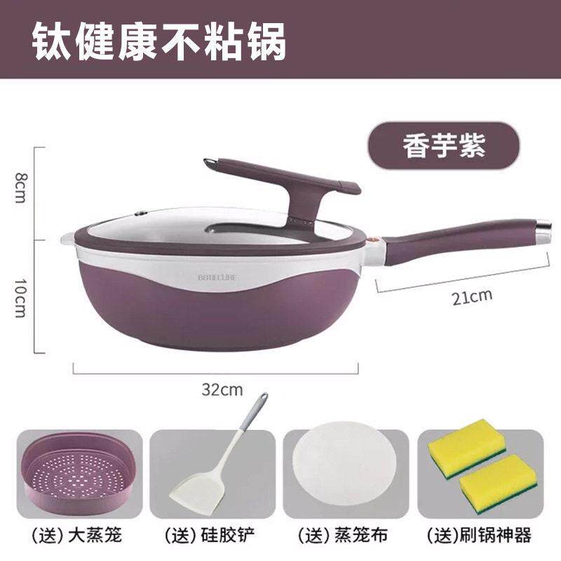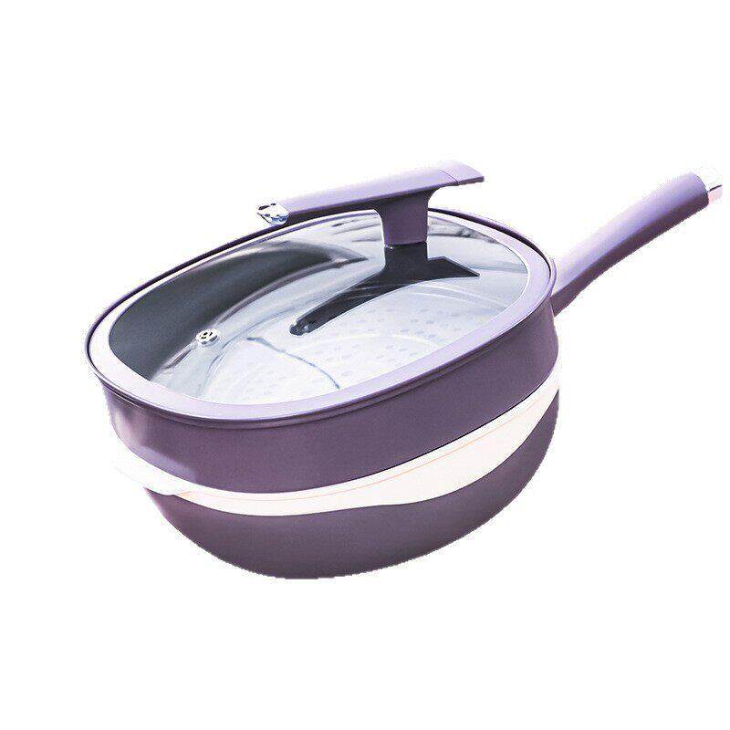 陶瓷钛不粘健康炒锅(32cm带蒸笼)紫色可选