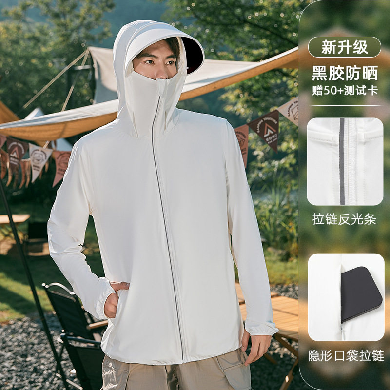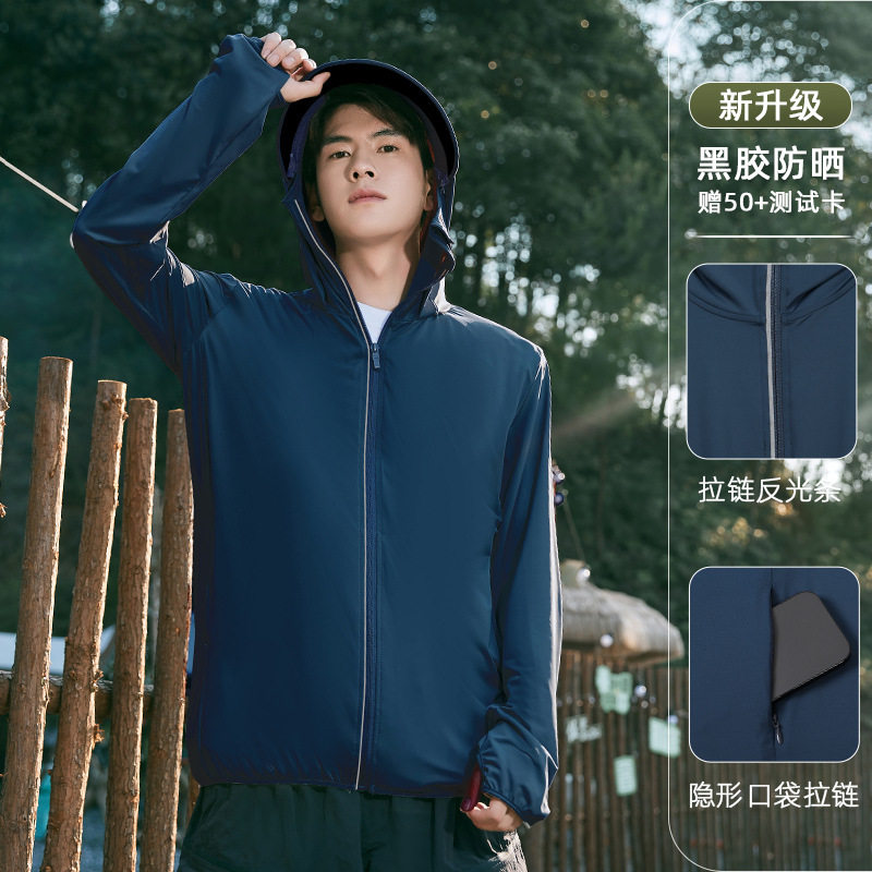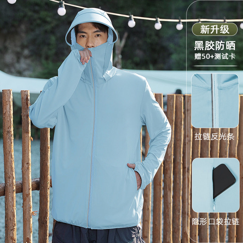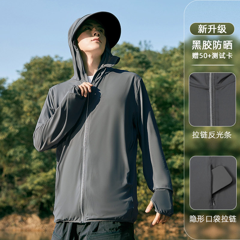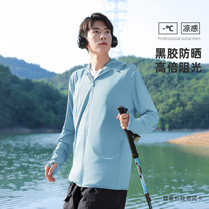 高品质男士黑胶原纱冰丝防晒衣,浅灰色,深灰色,藏蓝色,极地白,天空蓝五色可选,XL:100-140斤可穿 2XL:140-185斤可穿