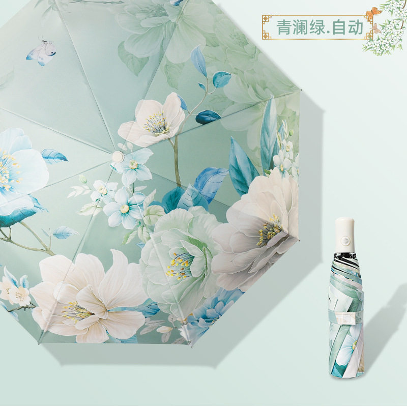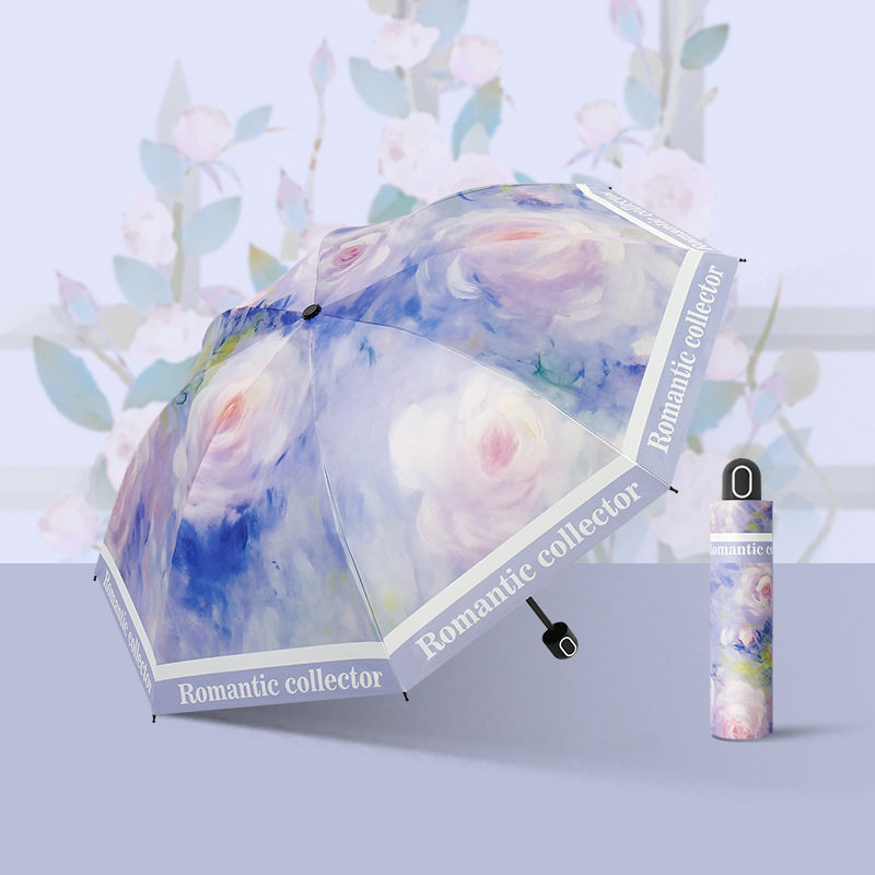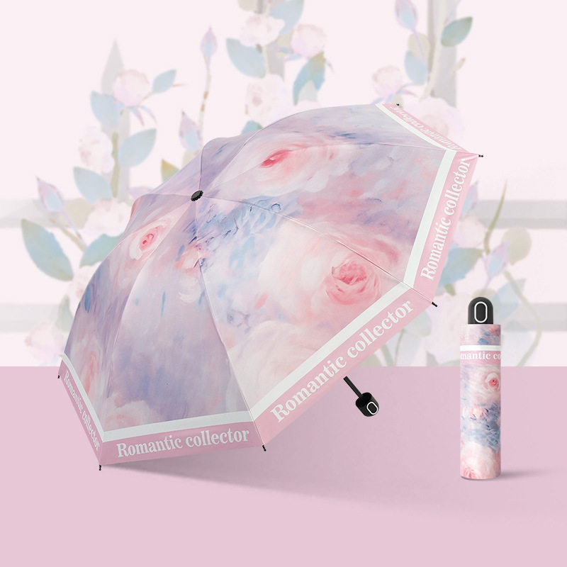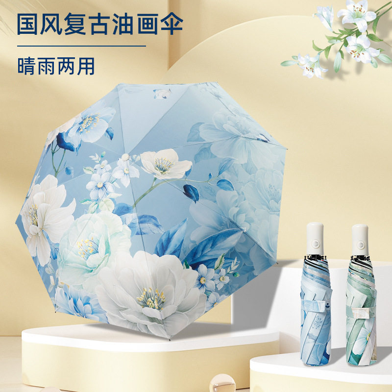 夏季防晒黑胶晴雨两用防紫外线伞,复古油画粉,复古油画紫,宇晴蓝,青澜绿四色可选