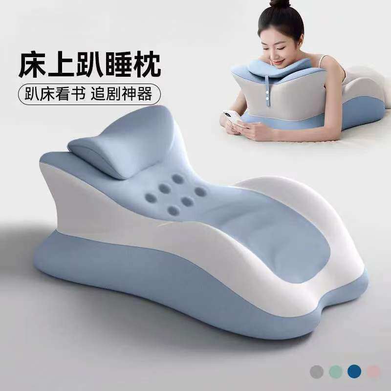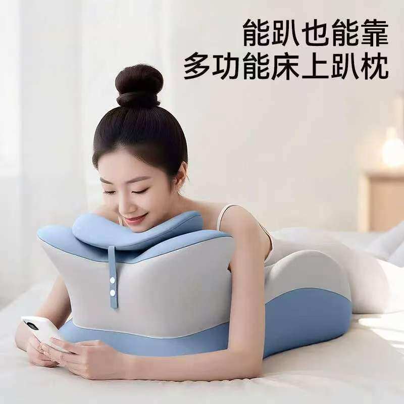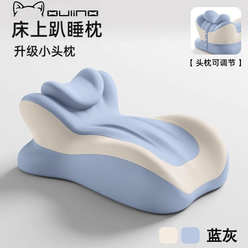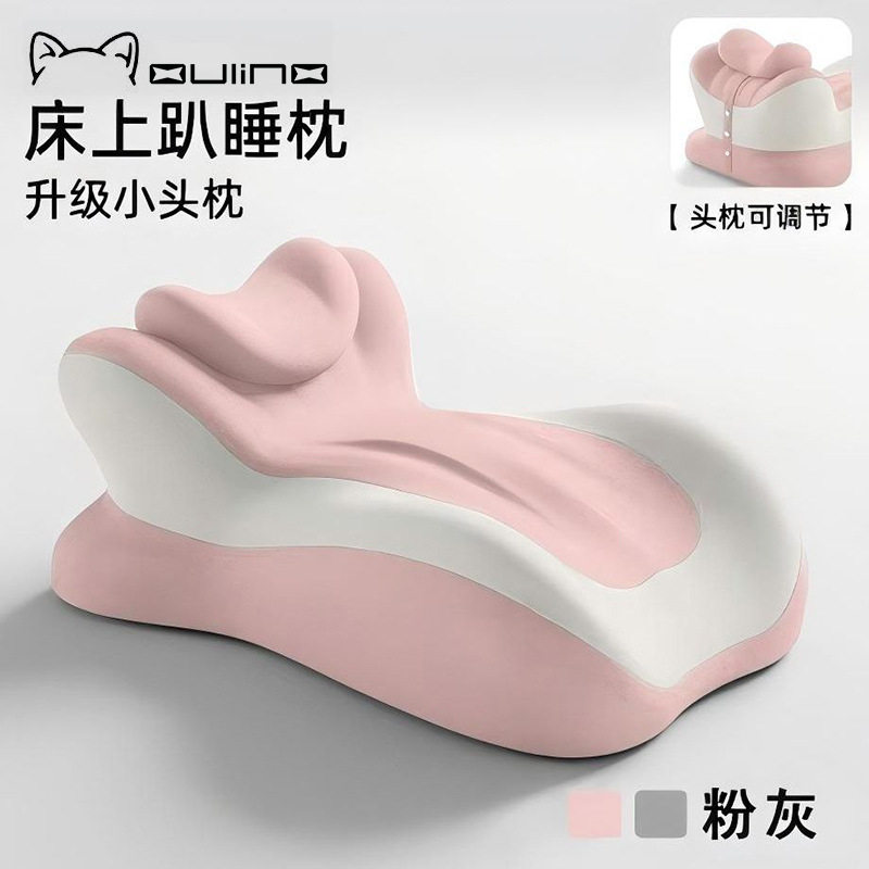 冰丝多功能趴睡记忆枕,粉灰拼色,米蓝拼色两色可选