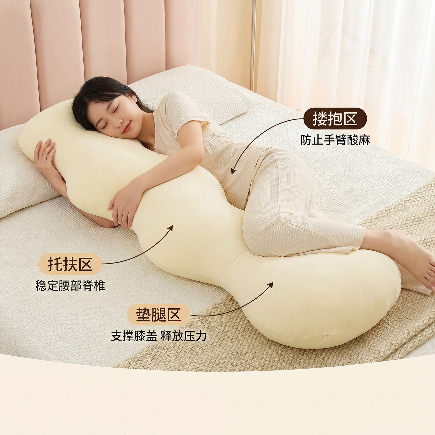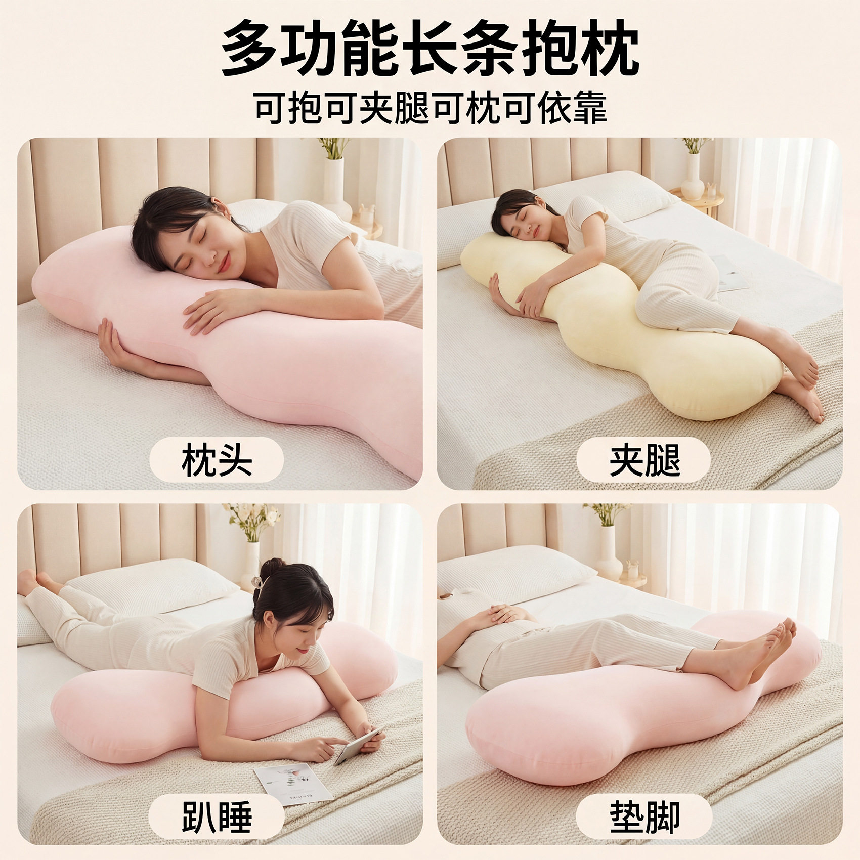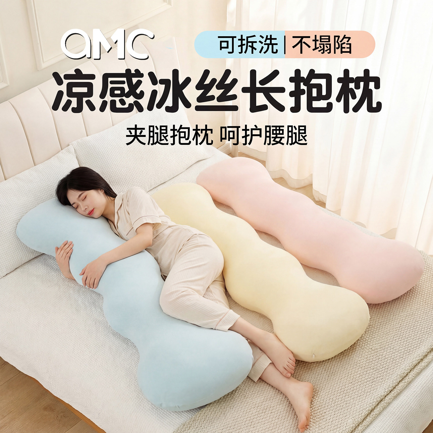 夏季凉感冰丝长抱枕 夹腿抱枕 呵护腰腿,紫色,蓝色,奶油黄,粉色,绿色 五色可选