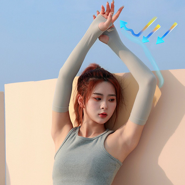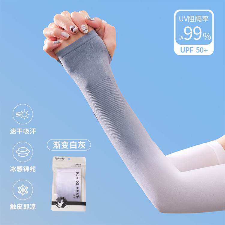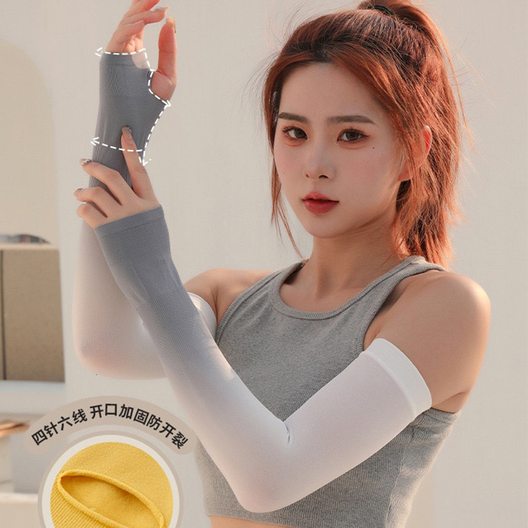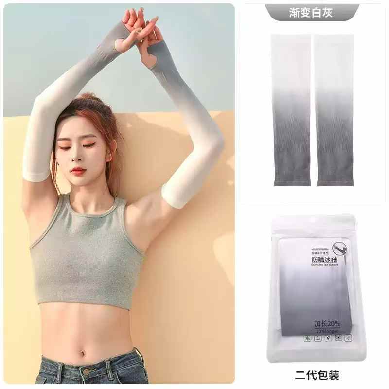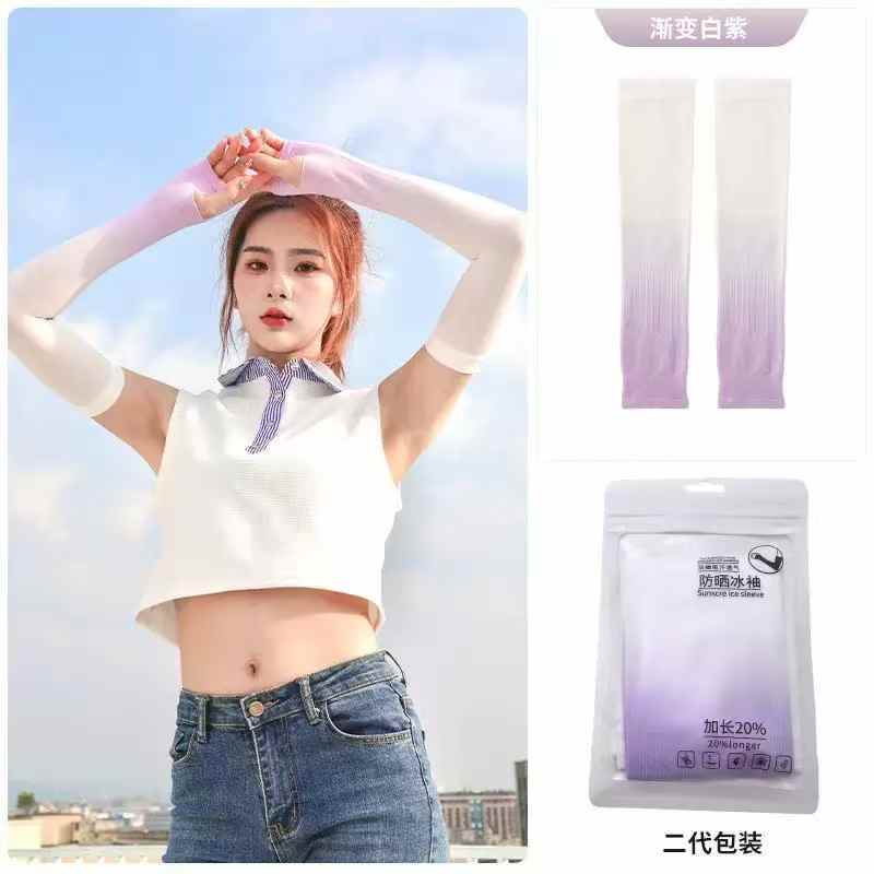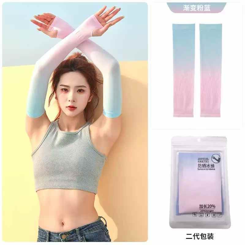 夏日缤纷凉感防晒冰袖 二代升级加长渐变款,粉蓝 白蓝 白紫 灰白 蓝 五色可选